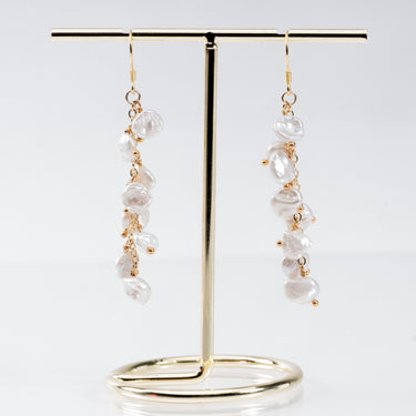The stunning Keshi Pearl Earrings are the epitome of ‘more is more’. Featuring a gorgeous cluster of Freshwater Pearls on a simple hook, the Keshi Pearls can add a polished look to any outfit.