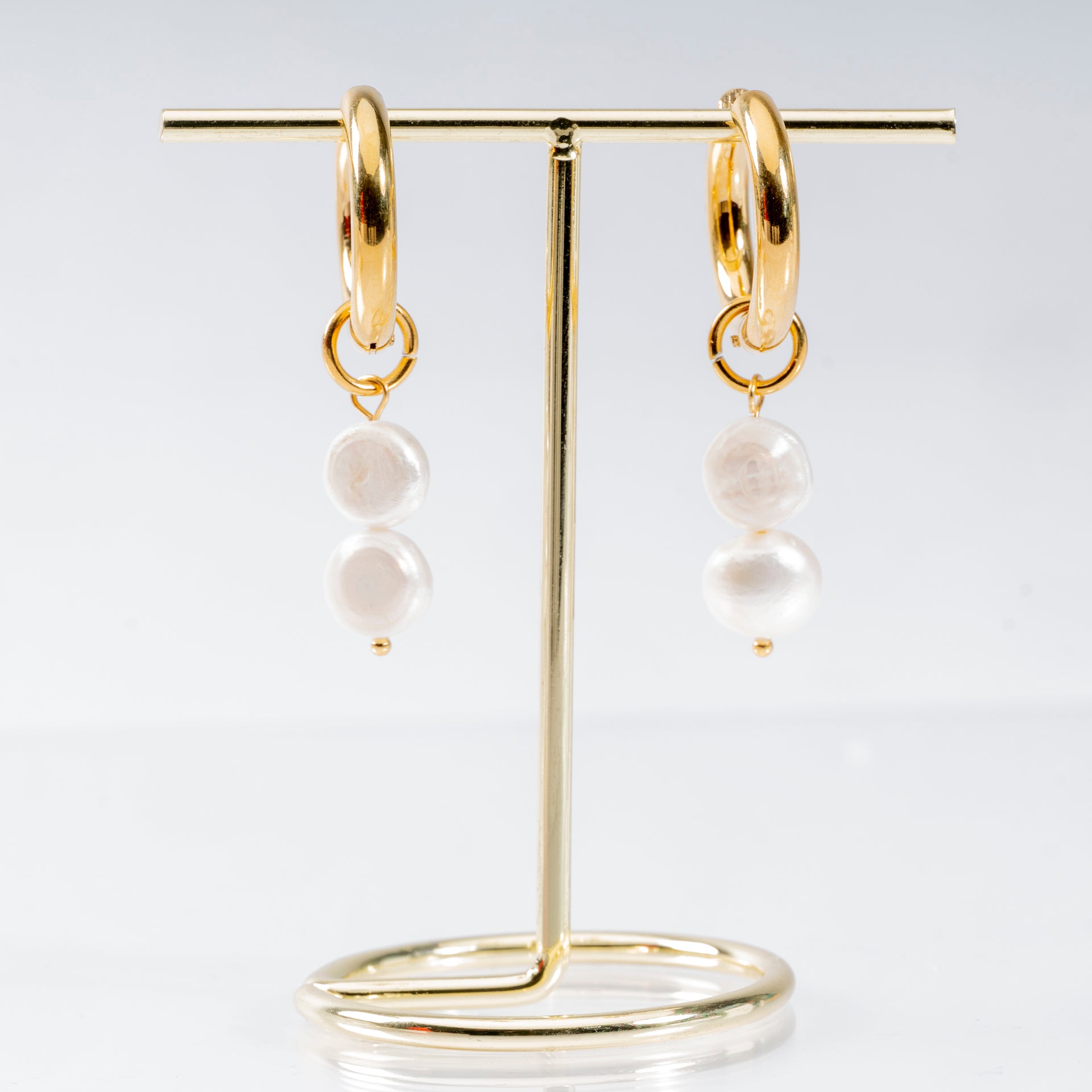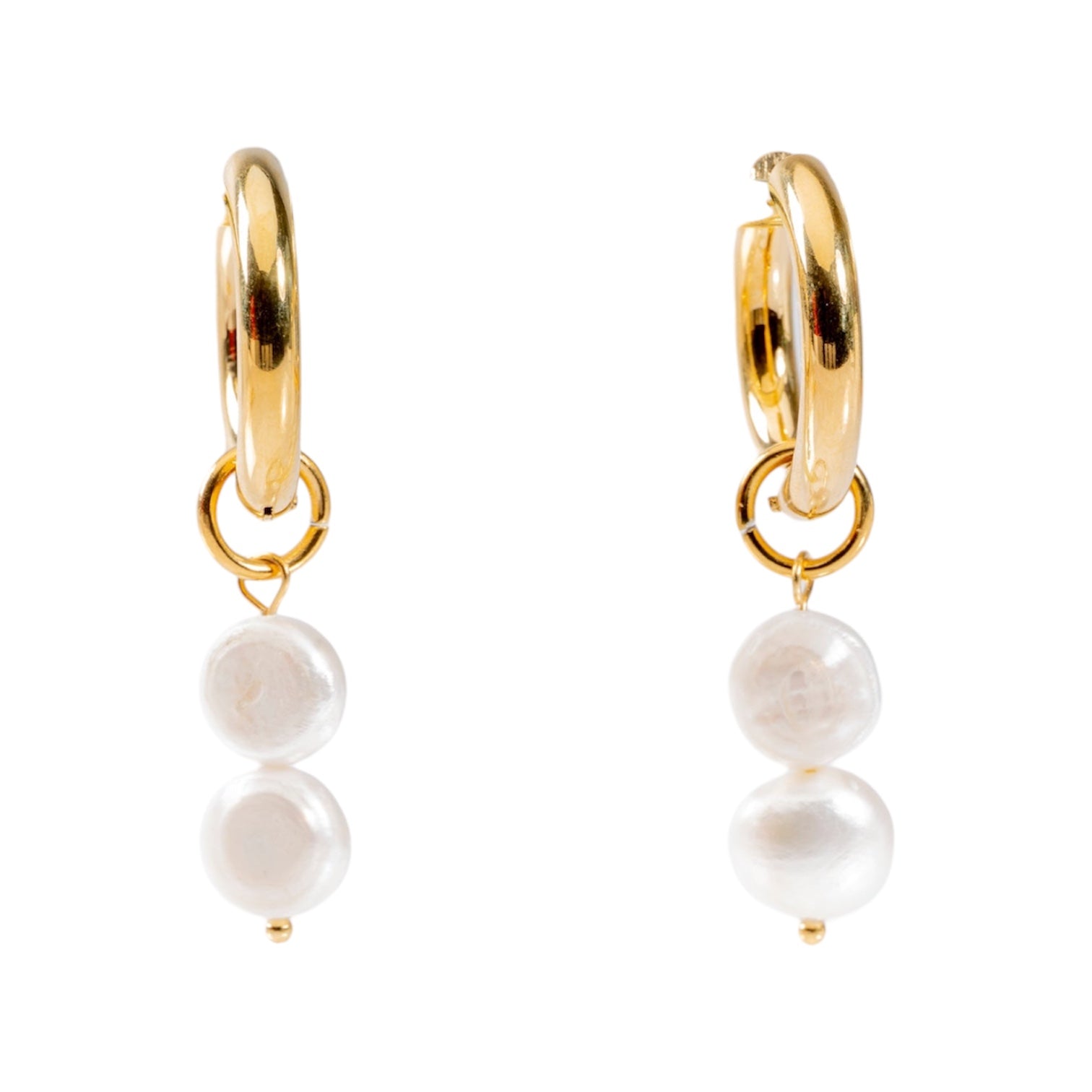18 Karat Gold-plated Hoop Earrings with Freshwater Pearl Charms by Ceann Mara Jewellery 18 Karat Gold-plated Hoop Earrings with Freshwater Pearl Charms by Ceann Mara Jewellery